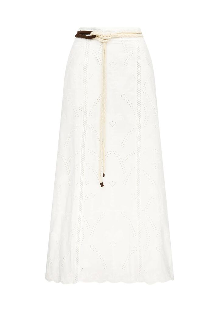 Cotton weave, A-line, back zipper, embroidered details, detachable rope belt, maxi hem | Shop Now, Buy Now Pay Later. Free Domestic Shipping over $300.