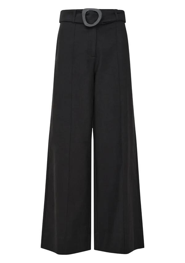 Swaying effortlessly through flowing wide leg shaping, these pants deliver seamless chic in crisp, classic black. Creating definition at the waist with an organically-shaped black buckled belt, the pants sweep to full length as centre-seam detailing helps to elongate the leg, complemented by further functional detail in a concealed front fastening and discreet pocking front and back.
