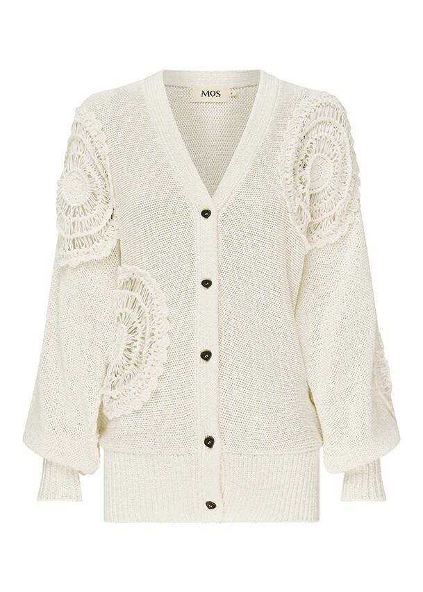 The Martina Knit Cardigan in chalk is crafted from a cotton blend with an open weave. Worked to a slouchy silhouette, the V-neck piece features tonal embroidered details across the body and arms. It offers a lightweight layer for styling with summer dresses, skirts and denim.Our eCommerce model, Fernanda, is 170cm tall with a 82cm bust, 62cm waist, 92cm hips, and wears a size S.Features:– Cotton-blend knit– V neckline– Button-down closures– Long sleeves– Ribbed trim– Embroidered finish77% Cotton, 23% Polyester