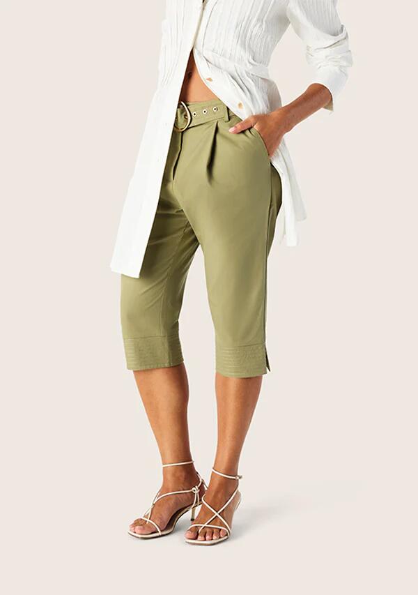 The Mila Capri Pants bring trending flair to new-season looks with chic, tailored finishes. The mid-rise silhouette falls just below-the-knees and is detailed with split hems. A detachable belt features metal eyelets and an oversized buckle. Style this olive green pair into your work and weekend rotation.Our eCommerce model, Fernanda, is 170cm tall with a 82cm bust, 62cm waist, 92cm hips, and wears a size 8.Features:- Cotton-blend suiting fabric- Straight leg silhouette- Mid waist- Split hems- Detachable belt38.3% Polyester, 31.3% Cotton, 30.4% Tencel