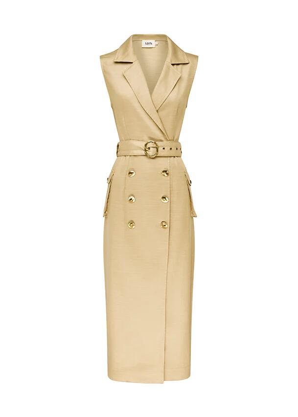 The Rita Wrap Dress makes its mark with utility-chic details, including shoulder tabs, double-breasted buttons and a belted waist. The midi silhouette is cut from a mid-weight canvas in a timeless beige hue. Style with golden jewellery to amplify the modern elegant vibe.Our eCommerce model, Fernanda, is 170cm tall with a 82cm bust, 62cm waist, 92cm hips, and wears a size 8.Features:- Tencel and cotton-blend canvas- Collared neckline- Double-breasted button closures- Front flap pockets with buttons- Shoulder tabs- Detachable belt- Midi length hem90% Tencel, 10% Cotton